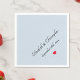 Create your own custom, personalized, elegant black typography / calligraphy / script / font on light dusty blue background, bride groom / couple names, wedding / anniversary date, red heart, your choice of white or ecru colored, coined or standard style, food contact safe, party celebration cocktail luncheon dinner paper napkins that look good tucked in the collar or draped over your lap. Simply type in the bride and groom's or wife and husband's names, and the wedding date, to customize. Elegant, classy paper napkins, perfect for wedding reception, anniversary celebrations, engagement party, and more.