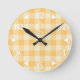 Monogram Light Orange Cream Plaid Farmhouse Round Clock