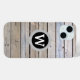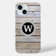 You'll love this wood-look monogram cell phone case with a modern trendy look! White monogram letter in black and gray circles and a background of wood slats.