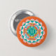 A soft, pastel floral mandala pattern in teal and coral. Artist: Harriet Sussman