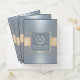 Monogram Logo Modern Gold Belt Dusty Blue Metal Pocket Folder
