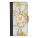 Elegant White & Gold Marble Pattern Customized Monogram M iPhone 8/7 Wallet Case.
