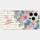 Monogram M Glam Gold Stripes Pink Aqua Roses Case-Mate iPhone Case