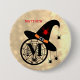 Monogram M Halloween Sky Witch Spiders Name Button