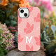 Monogram M Modern Coral Pink Butterfly Pattern iPhone Case