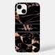 Personalized Black and Rose Gold Marble Pattern Case-Mate iPhone 14 Case - Personalized with a monogram and your name in elegant calligraphy script, it exudes sophistication. The swirling marble design in black and rose gold colors adds a touch of glamour. The monogram showcases your unique identity, while your name in calligraphy script adds a personalized touch.