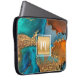 Monogram marble watercolor gold turquoise orange laptop sleeve