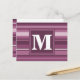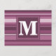 Monogram mauve stripes postcard