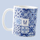 Monogram Mediterranean Blue White Tile Watercolor Coffee Mug