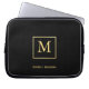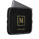 Classic, sleek, refined elegant gold and black monogram inital with custom name laptop sleeves and skins for the sophisticated professional gentleman. Perfect gift for the executives and students on your list. Business and personal notebook computer laptop sleeve available in 3 sizes. Can easily be customized with logo and tag line for your business or corporate promotions.