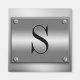 Silver brushed and shiny metal 3d frame with screws in a chrome smooth strong surface background. Easily personalize by adding any monogram, initial or name. Shown is the letter S. A great magnet nameplate for awards, medals, etc. Note that this realistic design is a printed design, not actually metal.
