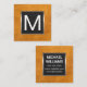 Monogram Metal Trim | Brown Leather Square Business Card