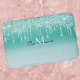 Monogram Metallic Aqua Blue Teal Glitter Dripping Bath Mat