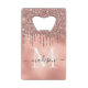Monogram Metallic Rose Gold Pink Glitter Drips Credit Card Bottle Opener