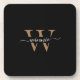 Monogram Minimal Elegant Black Gold Script Name Beverage Coaster
