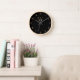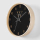 Personalize your Monogram Minimal Elegant Black Gold Script Name Clock.