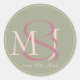 Monogram Minimalist Green & Pink Wedding Date Classic Round Sticker