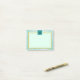 Old fashioned vintage paper with faded handwriting on a soft green background. A nice shabby style texture with an old world charm. The area for writing is a mint green rectangle with a double gold border. Monogram frame is a square box in a teal color with a gold double border. The font inside is a chic and trendy black font. Personalize the monogram with the initial of your choice.