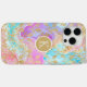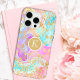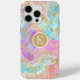 Monogram Modern Abstract Glitter Personalized iPhone 15 Pro Max Case Phone Case features a colorful abstract liquid art background in pink, purple, red and blue with a pattern of gold flowers and accented with faux gold glitter and personalized with your custom monogram in the centre. Perfect gift for her for Christmas, birthday, Mother's Day and more whether girlfriend, sister, mother, friends. Created by Evco Studio www.zazzle.com/store/evcostudio
