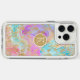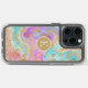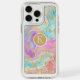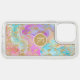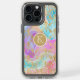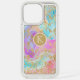 Monogram Modern Abstract Glitter Personalized iPhone 15 Pro Max Case Phone Case features a colorful abstract liquid art background in pink, purple, red and blue with a pattern of gold flowers and accented with faux gold glitter and personalized with your custom monogram in the centre. Perfect gift for her for Christmas, birthday, Mother's Day and more whether girlfriend, sister, mother, friends. Created by Evco Studio www.zazzle.com/store/evcostudio