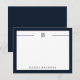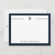 Monogram Modern Border Navy Blue and White Flat Note Card. Stylishly personalize with your monogram initial and name.