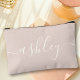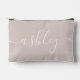 Monogram Modern Calligraphy Pink Ivory Script Accessory Pouch