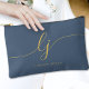 Monogram Modern Elegant Calligraphy Navy Gold Accessory Pouch