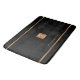 Trendy luxury exclusive looking monogrammed bathroom bath mat featuring a faux gold copper metallic glitter square and stripes over a stylish classy black background. Personalize it with name and monogram initial. It can be an elegant personalized personal or family gift for a birthday, housewarming, retirement, holiday, anniversary, or any other occasion.