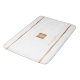 Trendy luxury exclusive looking monogrammed bathroom bath mat featuring a faux gold copper metallic glitter square and stripes over a stylish classy clear white background. Personalize it with name and monogram initial. It can be an elegant personalized personal or family gift for a birthday, housewarming, retirement, holiday, anniversary, or any other occasion.