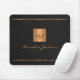 Luxury exclusive looking monogrammed stylish personalized mousepad featuring a faux gold copper metallic glitter square and lines over a stylish classy black leather look background. +++++++++ Personalize it with your text, your name and monogram initials.