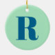 Monogram Modern Initial Letter Neo Mint Green Navy Ceramic Ornament