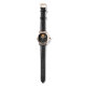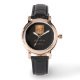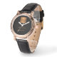 Luxury elegant black leather look watch for women with a gold glitter monogrammed square and personalized name signature.
