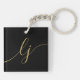 Monogram Modern Minimal Elegant Black Gold Script Keychain