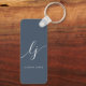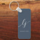 Monogram Modern Minimal Elegant Navy Blue Script Keychain