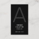 Vertical Business Card with Large Monogram Initial on black background texture is professional, elegant, and understated with a simple and plain aesthetic. This customizable business card is perfect for an Accountant, Consultant, Lawyer, Attorney or Law Firm, Realtor or Real Estate Agents and Broker, or Investor.