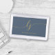 Monogram Modern Script Calligraphy Elegant Navy Blue Gold Business Card Case
