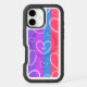 Monogram Modern Stripe Love Heart Girly iPhone 16 Cases features a colorful striped pattern with love hearts and personalized with your custom monoggram in simplw calligraphy script typography. Personalize by editing the text in the text boxes provided. Designed by ©2024 Evco Studio www.zazzle.com/store/evcostudio
