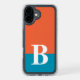 Monogram Monogrammed Simple Modern Orange Blue Phone 16 Plus Case features your custom personalized initial on an orange and blue colorblock background. Personalize by editing the text in the text box provided. Font and font color can be changed by personalizing. Perfect as a gift for him or her for birthday, Christmas, Father's Day, Mother's Day, holidays and more. Created by Evco Studio www.zazzle.com/store/evcostudio