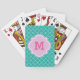 Monogram moroccan quatrefoil trellis playing cards. Cute personalized monogram design with pink and turquoise blue lattice trellis print. Trendy gift idea for kids. Add your own custom name initial letter. Fun card game gift for women and girls; daughter, sister, cousin, grandchild etc. Also nice as trendy Birthday party favor gift idea.