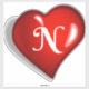Monogram N, white script on ruby red heart Sticker