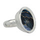 Monogram Name Agate Navy Blue Gold Gemstone Marble Ring