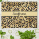 Monogram Name Black Gold Leopard Print Cheetah Kitchen Towel