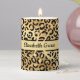 Monogram Name Black Gold Leopard Print Cheetah Pillar Candle