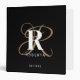 This elegant stylish personalized monogram kitchen recipe binder features a gold script initial with a bold white initial and name superimposed, on a black background.