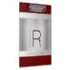 Monogram & Name Black Grey Deep Red Brushed Silver Clipboard