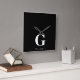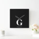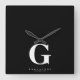 Stylish Monogram Name Black & White - Designer Black Square Wall Clock. Chic black and white design with three lines of customizable white text. Personalize with your monogram initial, name, and established date (or any text you like. Background and text can be any colors you choose. Excellent design for business or personal use. We invite you to visit our Zazzle store, GJ Design Co, to view matching products and more.
