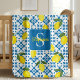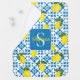 This unique baby blanket features a blue French Country tile lemon pattern that will add a touch of Mediterranean charm to your home. It is easily customizable with your monogram and name.
