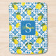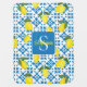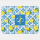 Monogram Name Blue French Tile Lemon Pattern Baby Blanket