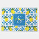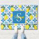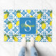 Monogram Name Blue French Tile Lemon Pattern Doormat