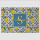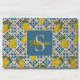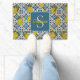 Monogram Name Blue French Tile Lemon Pattern Fiber Doormat